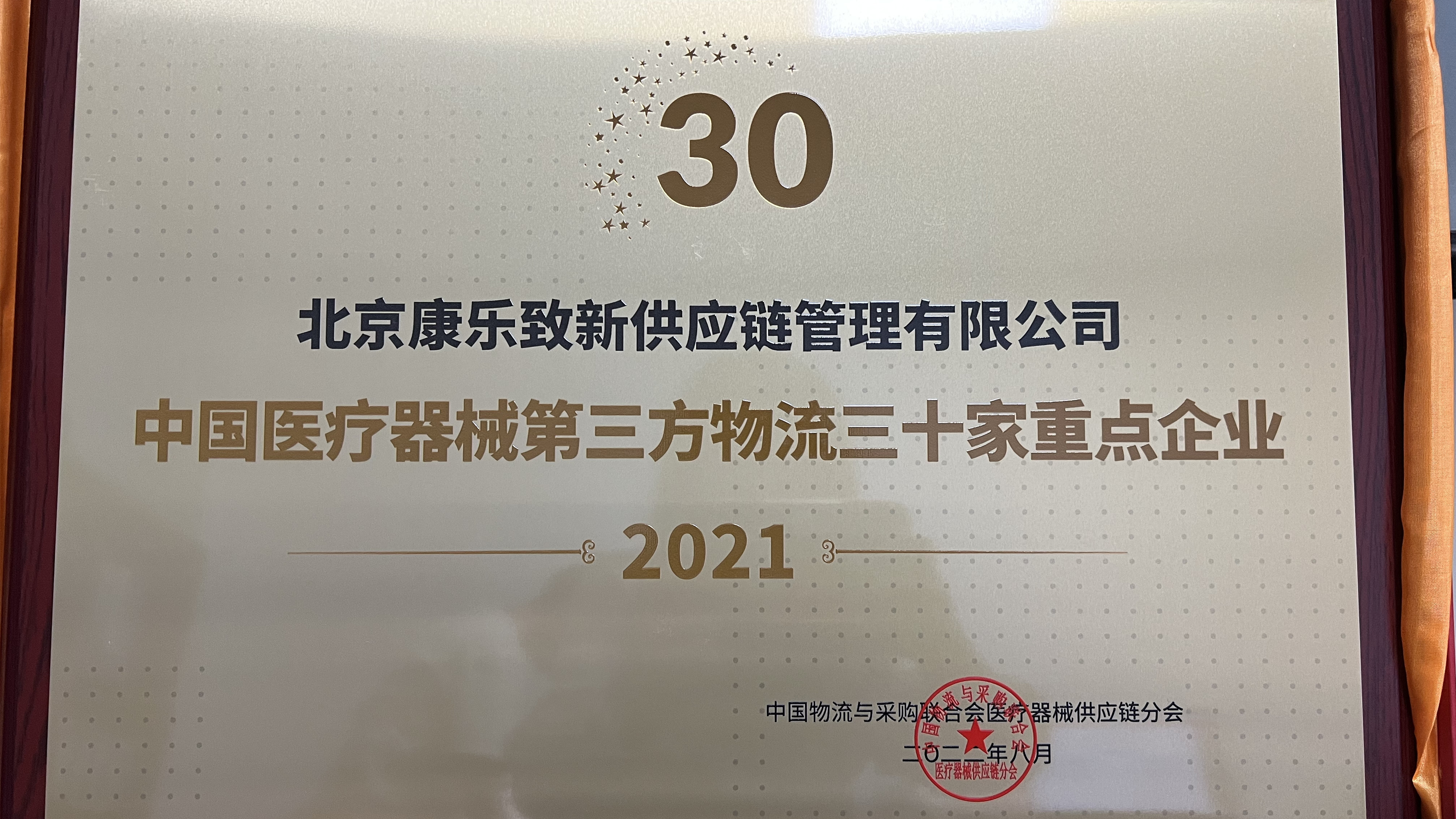 C&D Medical | Beijing Kangle Innostic is honored as Top 30 Key Enterprises of Medical Device Third-Party Logistics in China in 2021